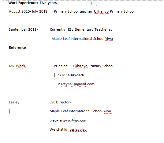 國籍: 澳大利亞 求職意向: 教師