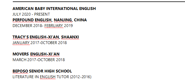 國籍: 其他 求職意向: 教師