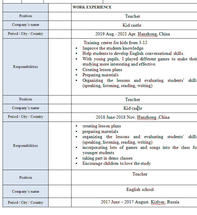 國(guó)籍: 摩洛哥 求職意向: 教師