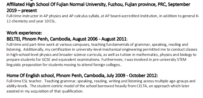 在福州,有CELTA證書,找教科學的職位,可以教(物理,化學,微積分)下學期工作,城市不太限制(北京、天津、西安除外)30k左右 |