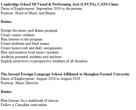 國(guó)籍: 澳大利亞 求職意向: 教師