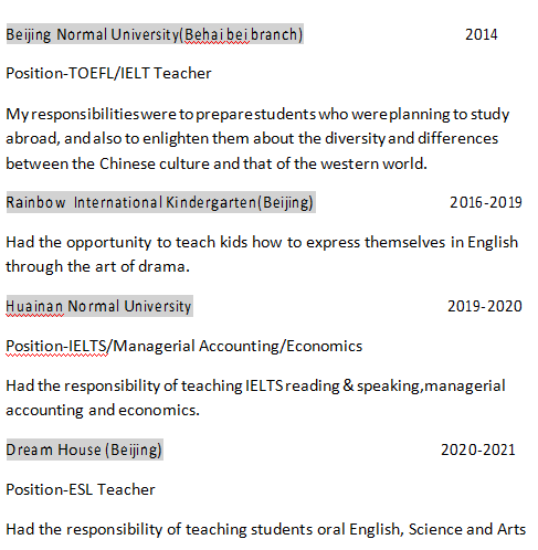 國(guó)籍: 澳大利亞 求職意向: 教師