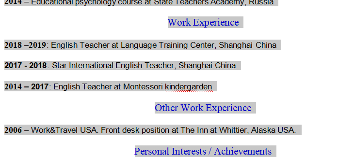 國籍: 其他 求職意向: 教師