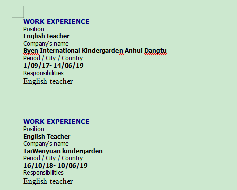 國(guó)籍: 澳大利亞 求職意向: 教師