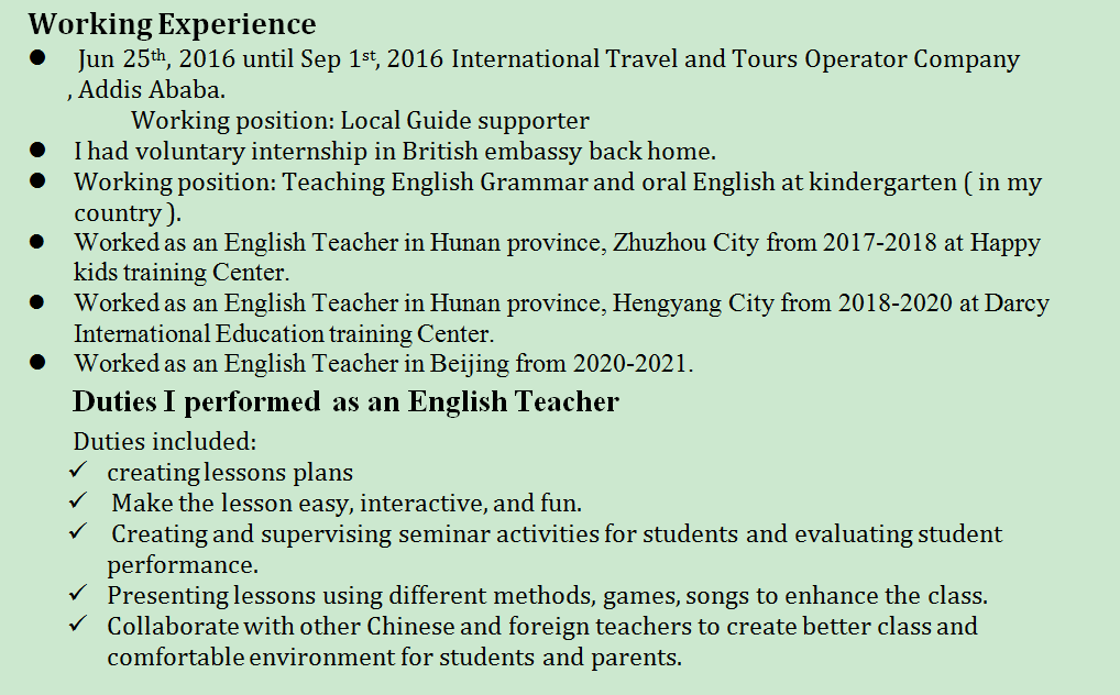 國籍: 其他 求職意向: 教師