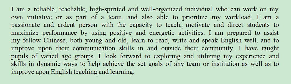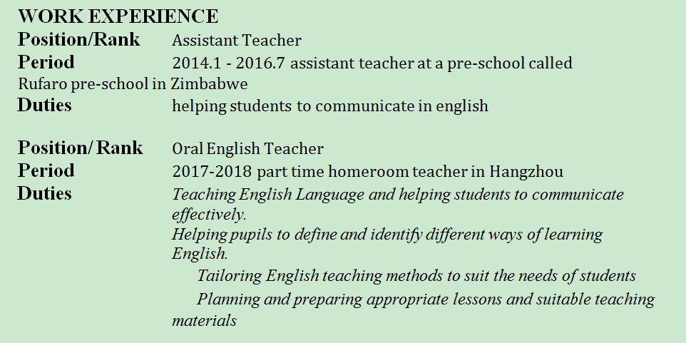 國(guó)籍: 澳大利亞 求職意向: 教師