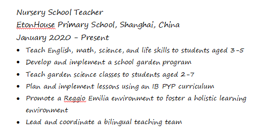 本科學(xué)歷,有美國(guó)中學(xué)科學(xué)教師資格證,6年以上經(jīng)驗(yàn),求職下學(xué)期上海中學(xué)科學(xué)職位,28k+ |
