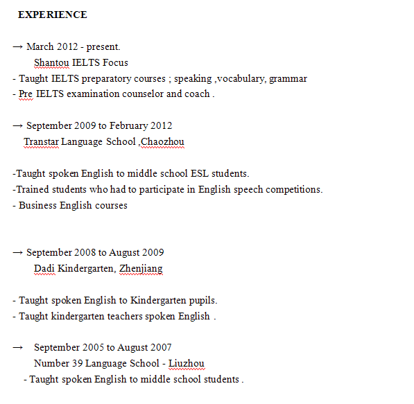 國(guó)籍: 孟加拉 求職意向: 教師