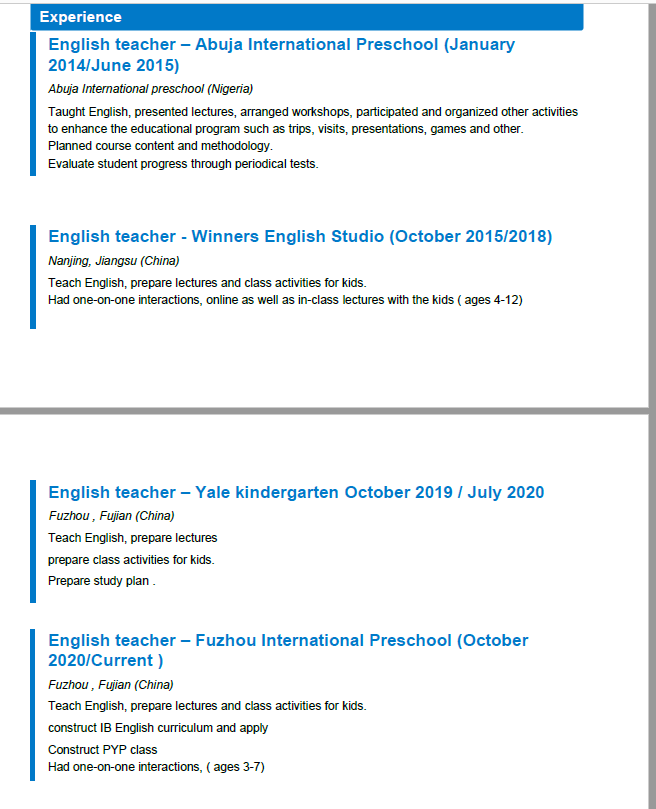 國(guó)籍: 澳大利亞 求職意向: 教師