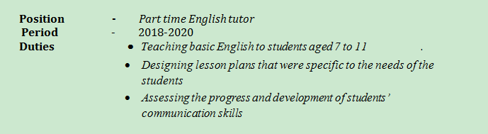 國(guó)籍: 孟加拉 求職意向: 教師