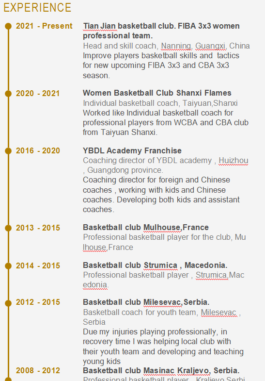 塞爾維亞, 在天津, 籃球教練, 美國密歇根大學(xué)體育專業(yè), 工作簽證資料齊全, 求籃球教練職位。 |
