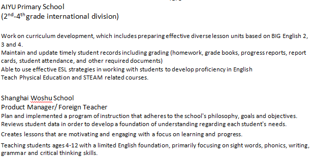 國(guó)籍: 澳大利亞 求職意向: 教師