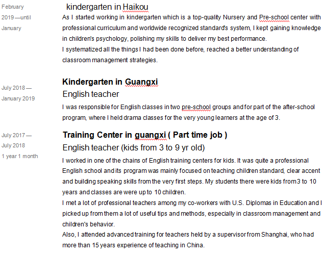 國籍: 其他 求職意向: 教師