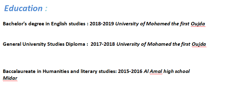 國(guó)籍: 摩洛哥 求職意向: 教師
