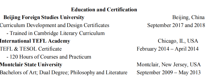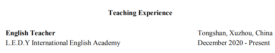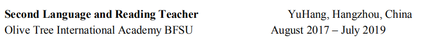 國籍: 其他 求職意向: 教師