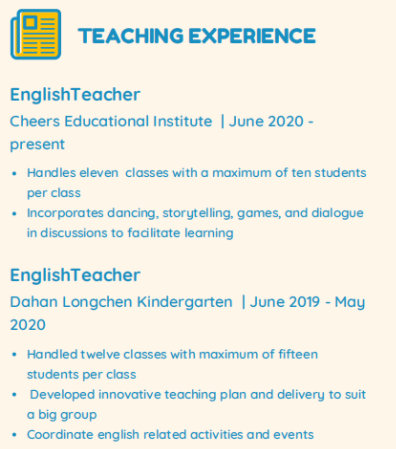 國籍: 其他 求職意向: 教師