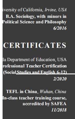國(guó)籍: 澳大利亞 求職意向: 教師
