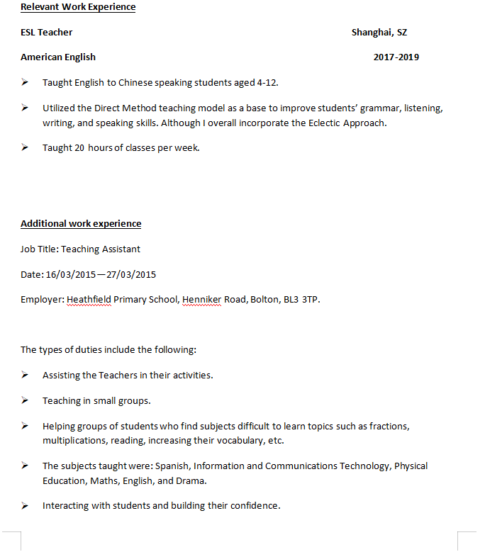 國(guó)籍: 孟加拉 求職意向: 教師