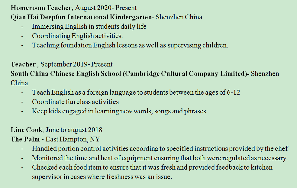 國(guó)籍: 孟加拉 求職意向: 教師