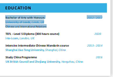 國籍: 澳大利亞 求職意向: 教師