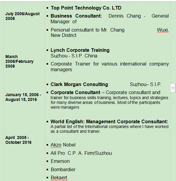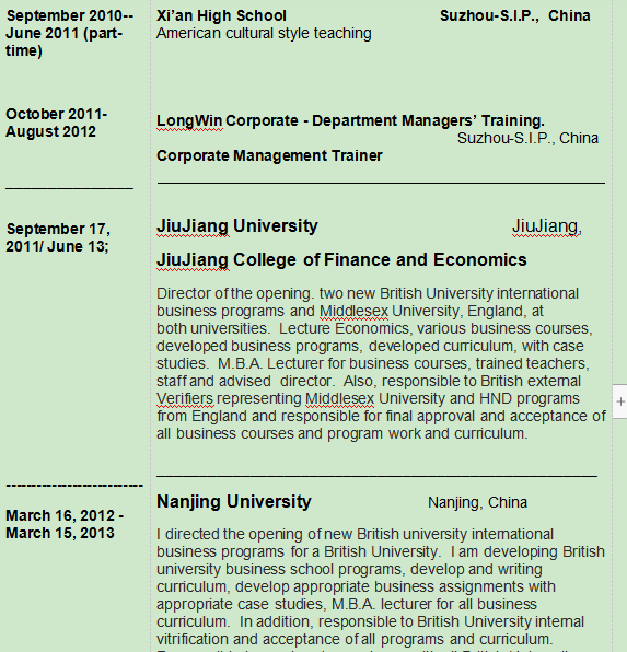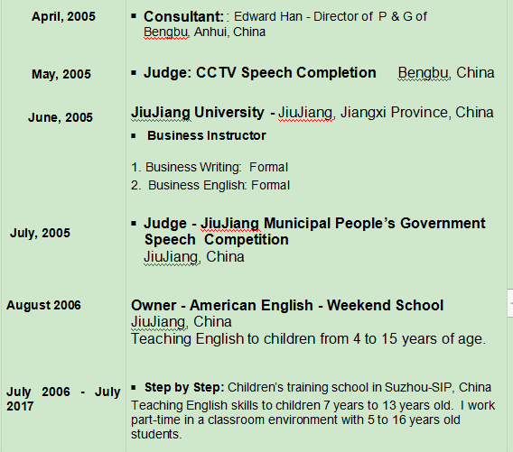 Kerry +美國男60多+本科,tesol+自理人道主義簽到6月,然后獲得商務(wù)簽+求職廣州最好,幼兒園到大學(xué)+目前在廣州,盡快到,多年教學(xué)經(jīng)驗,可以教幼兒園,培訓(xùn),小學(xué)到大學(xué) |