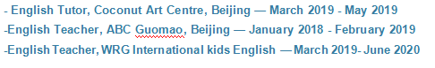 國籍: 澳大利亞 求職意向: 教師