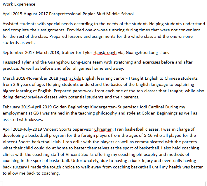 國籍: 其他 求職意向: 教師