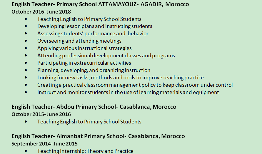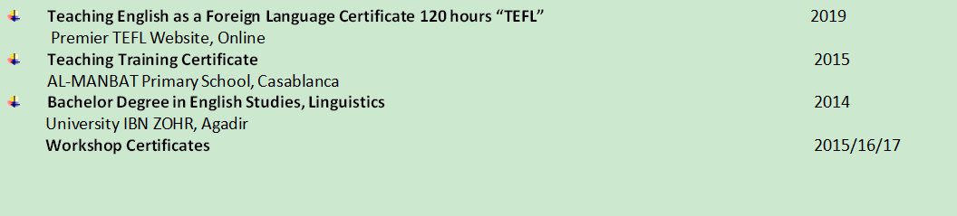 國籍: 摩洛哥 求職意向: 教師