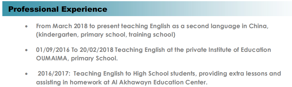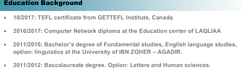 國籍: 摩洛哥 求職意向: 教師