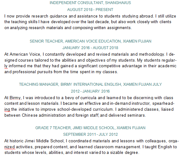 國(guó)籍: 澳大利亞 求職意向: 教師