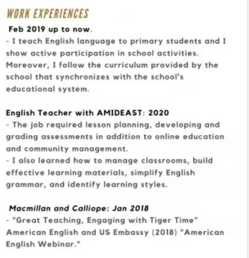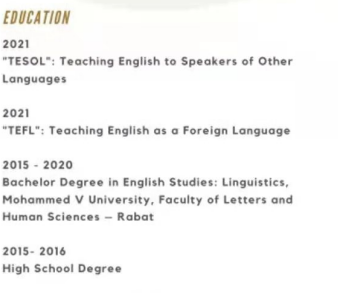國(guó)籍: 摩洛哥 求職意向: 教師