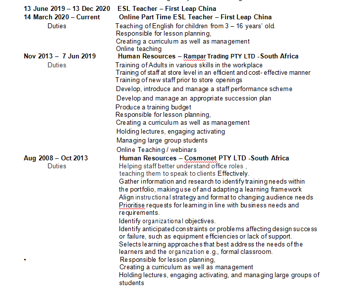 只求職公立或者國(guó)際學(xué)校,工簽轉(zhuǎn)聘,秋季學(xué)期到崗,工作多年,教學(xué)經(jīng)驗(yàn)豐富 |