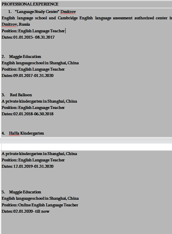 外教的工作經(jīng)歷