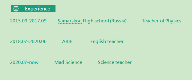 國籍: 其他 求職意向: 教師