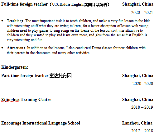 國(guó)籍: 澳大利亞 求職意向: 教師