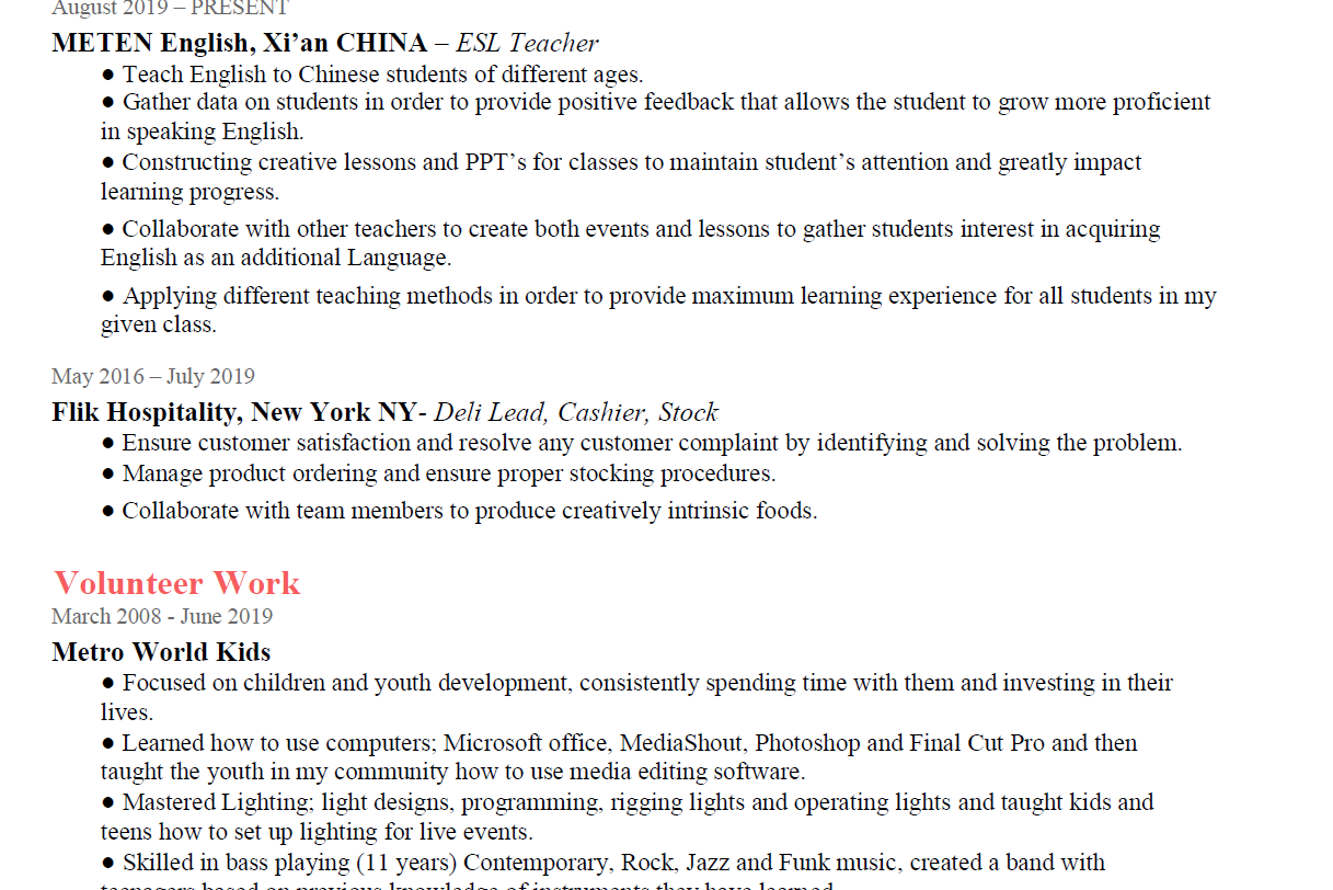 國(guó)籍: 孟加拉 求職意向: 教師