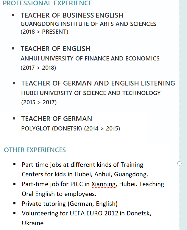 烏克蘭, 德語+英語專業(yè)碩士 德語和英語經(jīng)驗(yàn)豐富 目前無FZ需要更新, 求職可以辦理工作簽證的學(xué)校。 薪資協(xié)商。 |