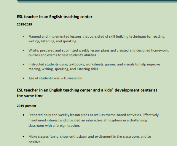 會點漢語, 只求職濟寧, 在濟寧工作多年, 英語水平不錯, 喜歡教小朋友, 有責任感 |