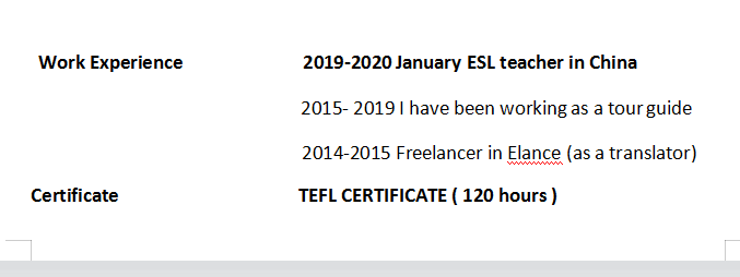 工簽資料齊全,國(guó)內(nèi)一年教學(xué)經(jīng)驗(yàn),求職地不限。 |