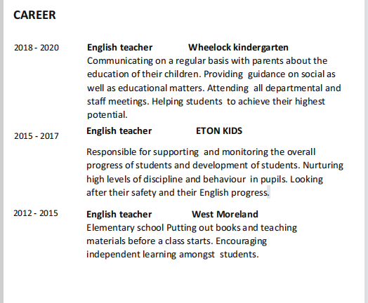 自我介紹,32歲,6年教學(xué)經(jīng)驗(yàn),也在美國教學(xué)過,培訓(xùn)和幼兒園都有經(jīng)驗(yàn)。
