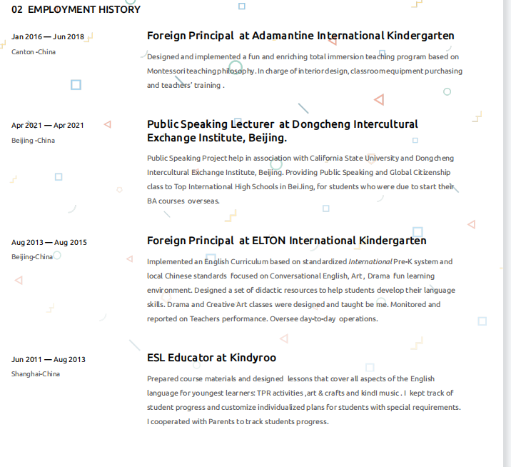 國籍: 其他 求職意向: 教師