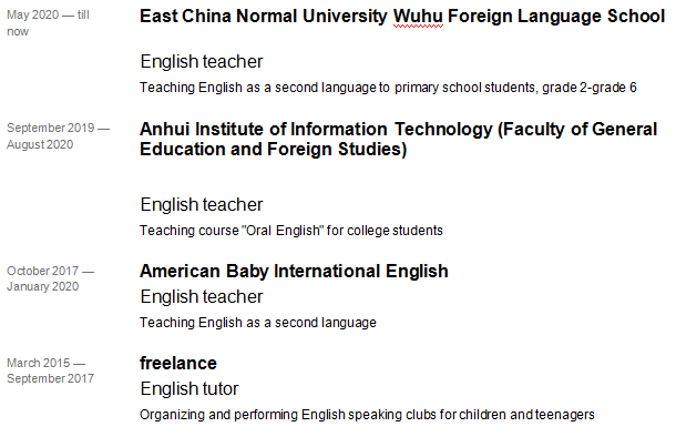 國(guó)籍: 澳大利亞 求職意向: 教師