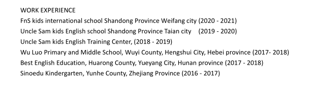 國(guó)籍: 摩洛哥 求職意向: 教師
