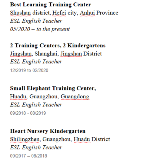 國(guó)籍: 澳大利亞 求職意向: 教師
