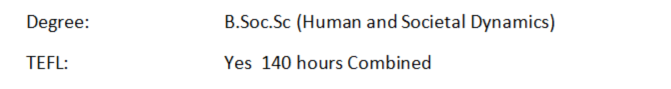 國籍: 澳大利亞 求職意向: 教師