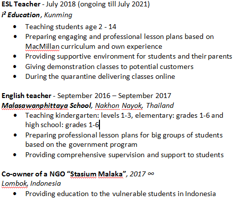 國(guó)籍: 澳大利亞 求職意向: 教師