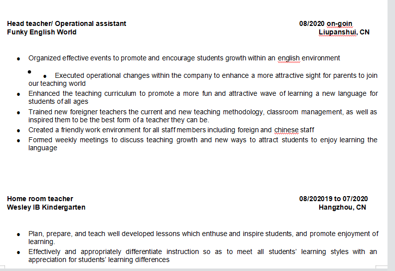 國籍: 其他 求職意向: 教師