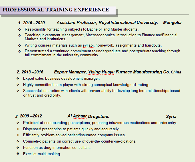 國籍: 孟加拉 求職意向: 教師