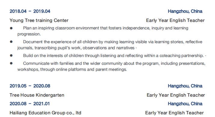 國籍: 其他 求職意向: 教師