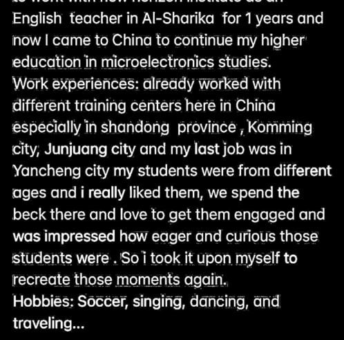 國(guó)籍: 摩洛哥 求職意向: 教師